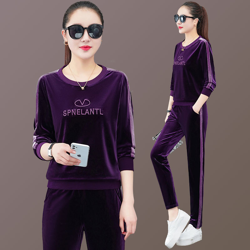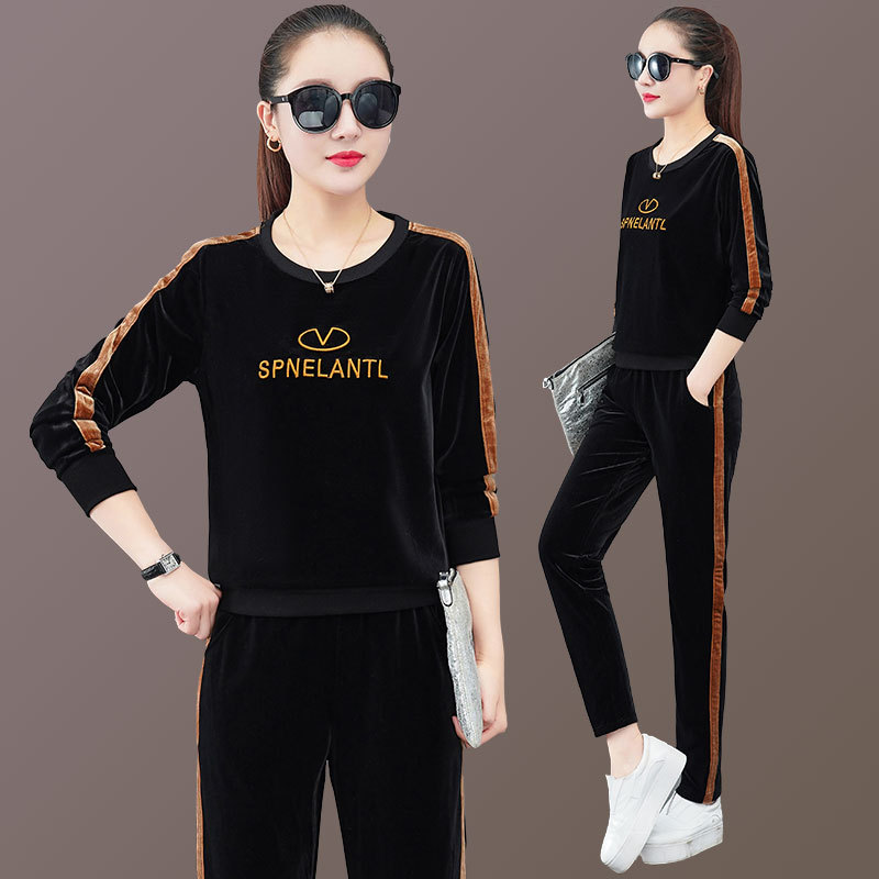 金丝绒运动套装女2022年新款春秋条绒休闲时尚大码两件套春秋妈妈