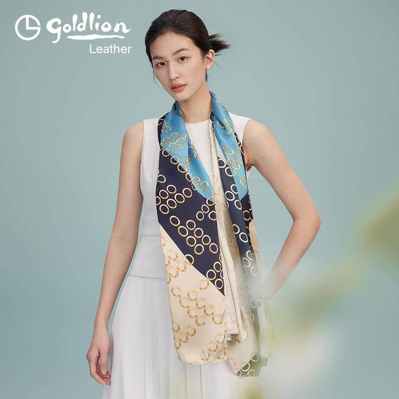 金利来双色丝巾女春季真丝气质百搭围脖品牌轻奢大披肩双面两用潮
