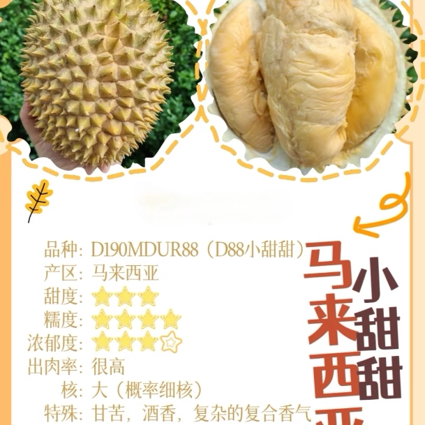 北马榴【树熟液氮】小品种D88小甜甜或橙肉榴莲甘苦酒香适合老饕