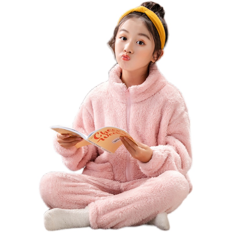 珊瑚绒亲子睡衣母女儿童秋冬季加绒加厚中大女童法兰绒家居服套装