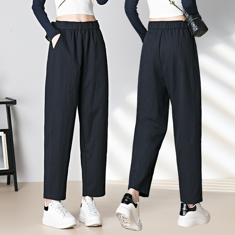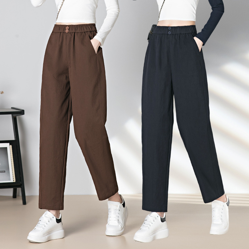 九分天丝亚麻哈伦裤女春秋夏季2025新款小个子高腰宽松休闲弯刀裤