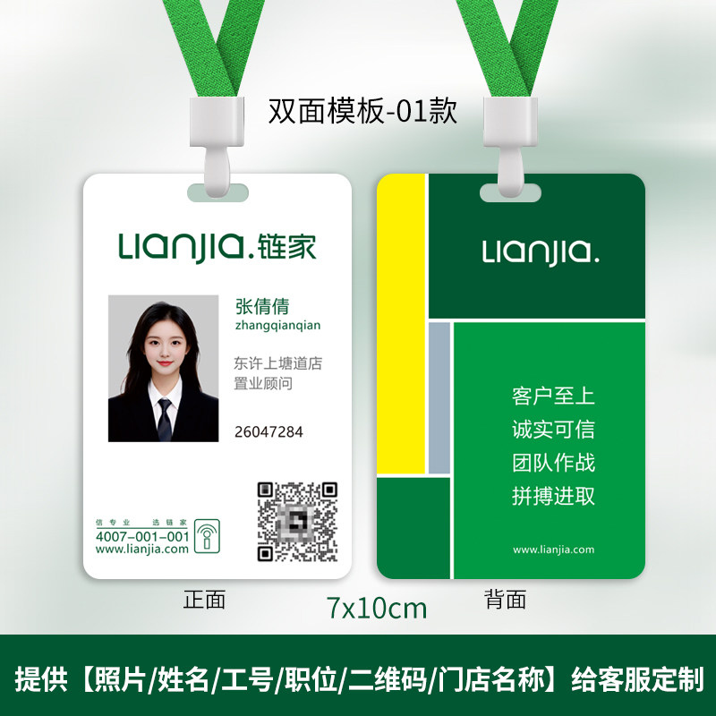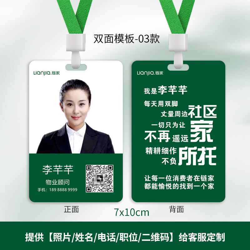 链家工牌德佑工作证贝壳挂牌定制Q家网胸牌房地产员工工牌定做印