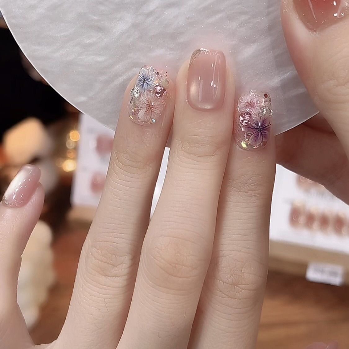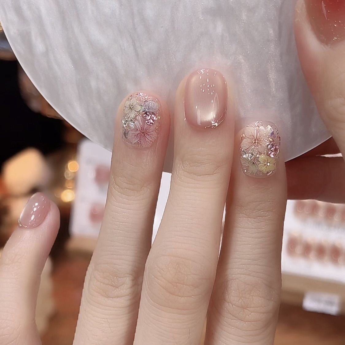 莫奈花园纯手工可拆卸美甲贴片高级感显白气质款玻璃珠猫眼穿戴甲