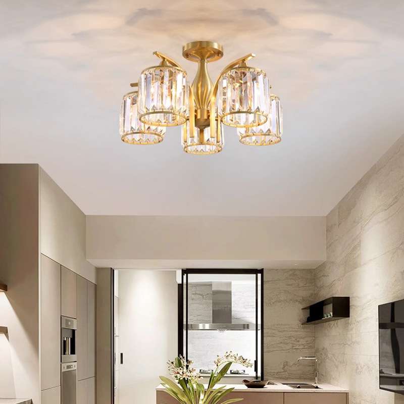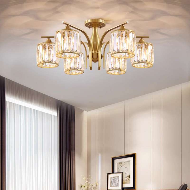 美式轻奢全铜水晶吊灯客厅灯主灯简约复古餐厅灯卧室灯吸顶 N213