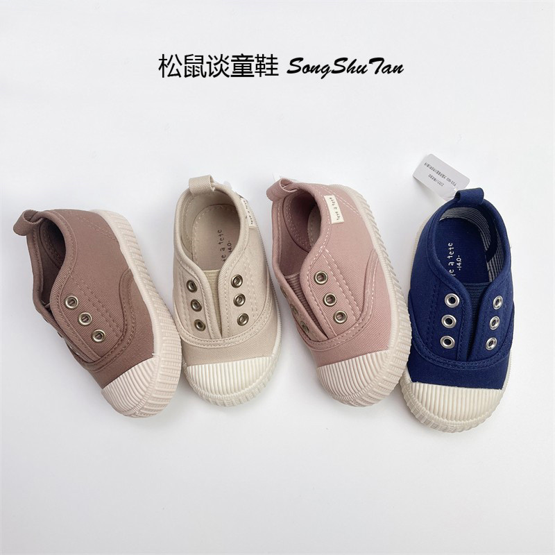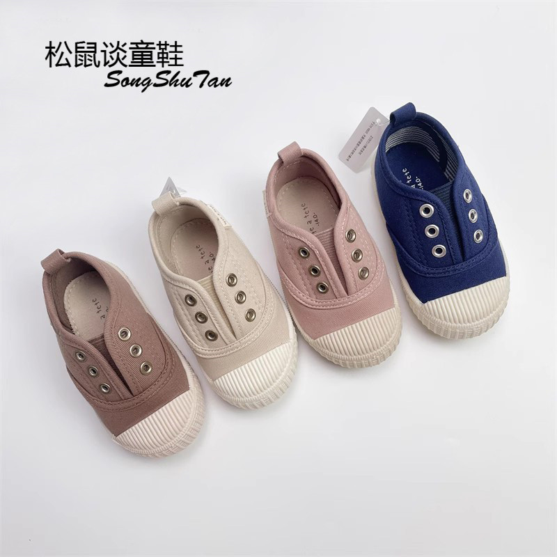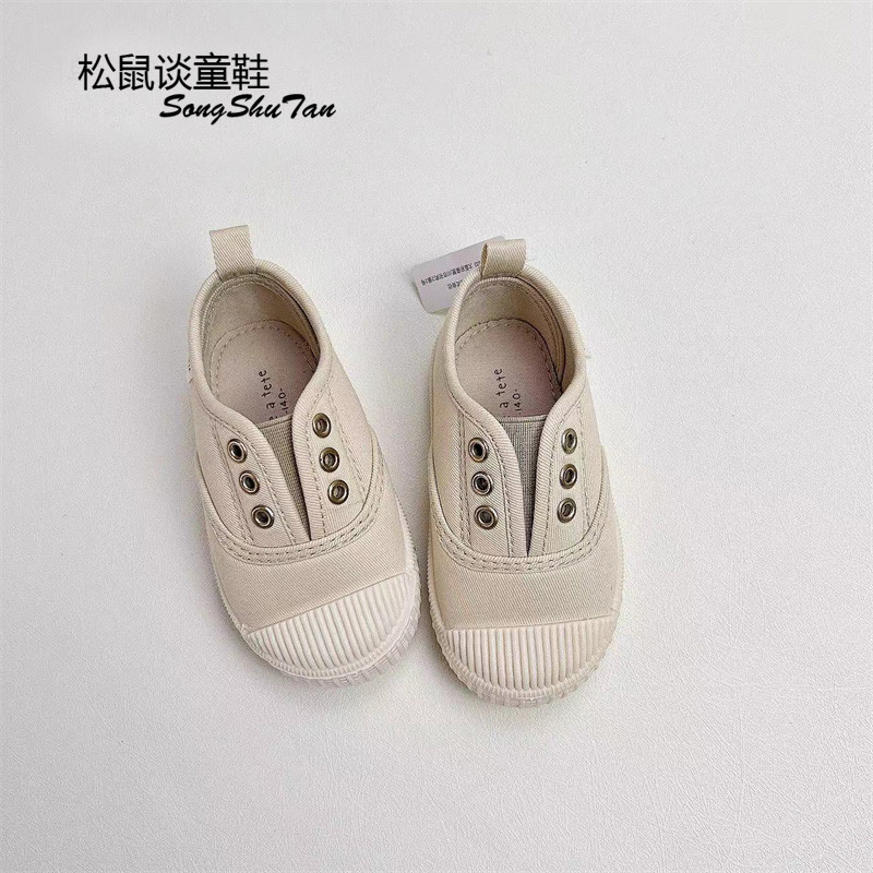 儿童帆布鞋幼儿园鞋小白鞋男女宝宝防踢轻便一脚蹬室内鞋小童软底