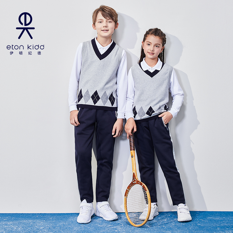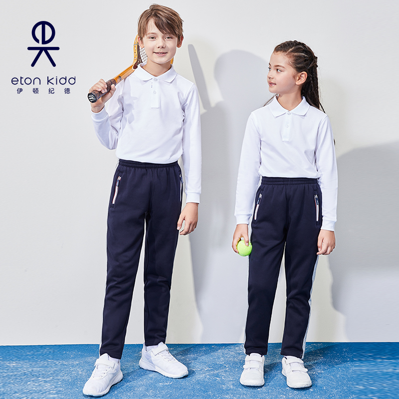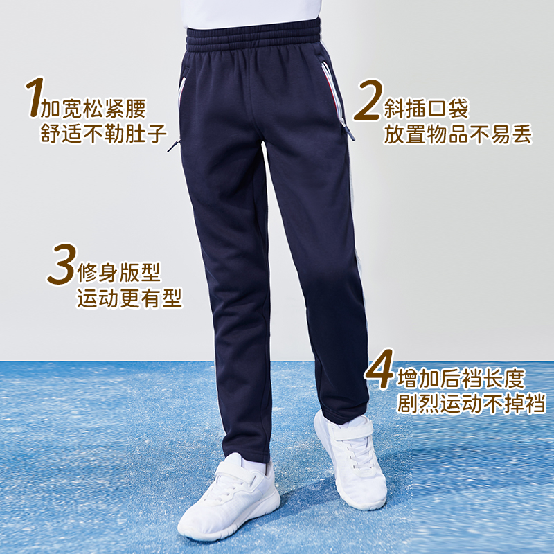 伊顿纪德学院儿童装秋冬新款加绒运动裤 藏青男女童长裤22Y907X惠