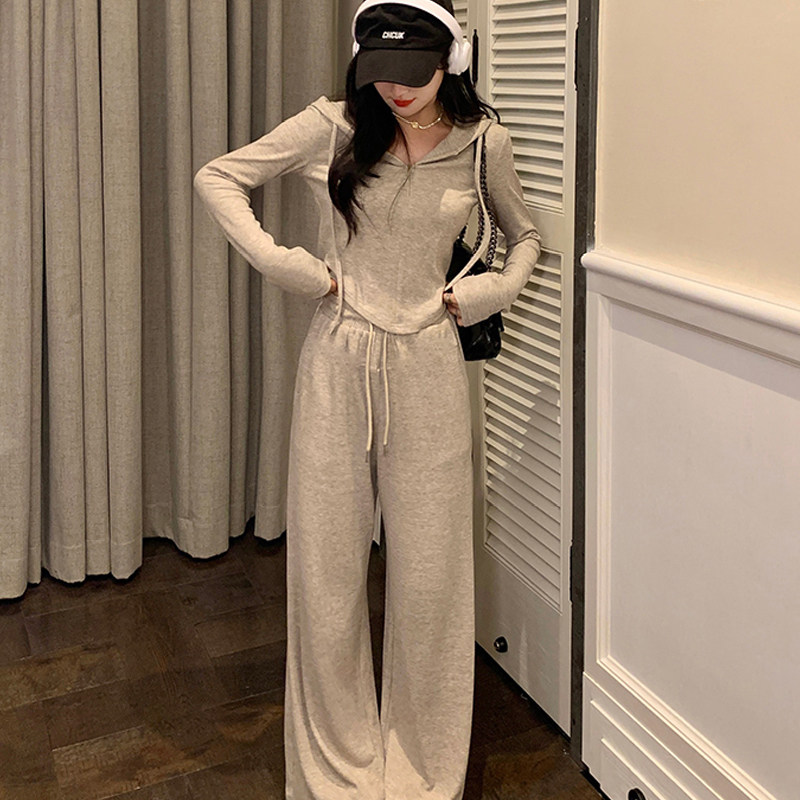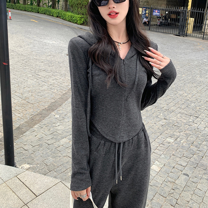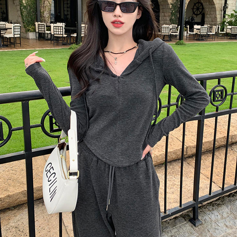 特价连帽运动时尚卫衣套装女秋冬法式气质修身显瘦休闲法式两件套