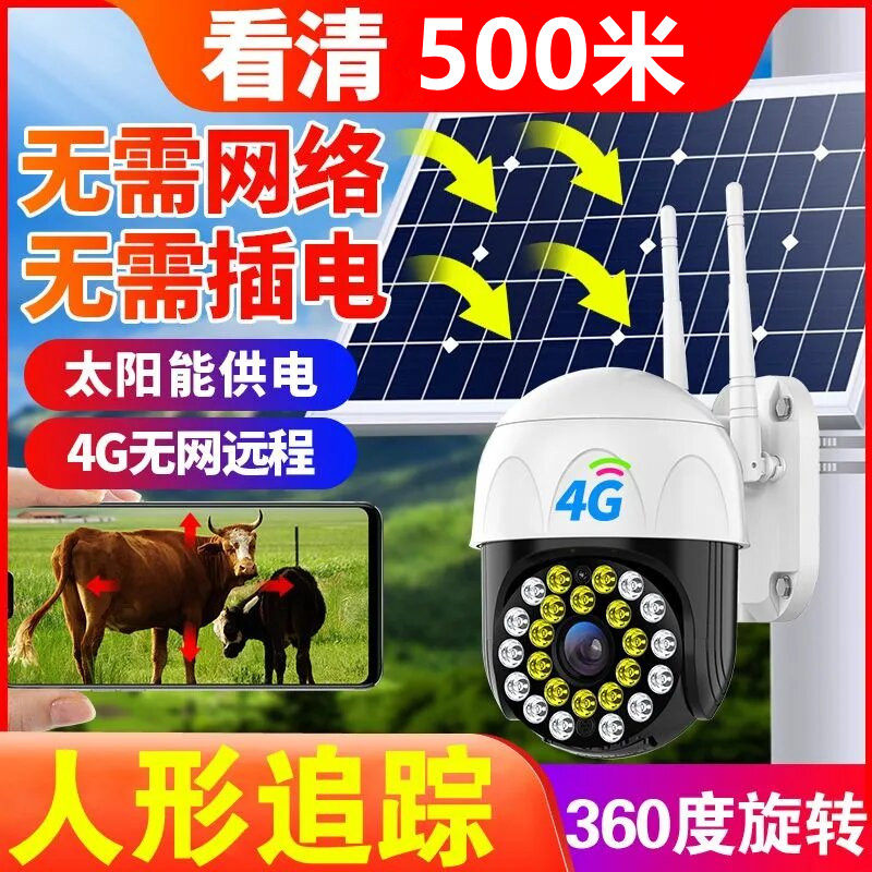 太阳能监控摄像头360度无死角手机远程超清全彩夜视看家户外防水1