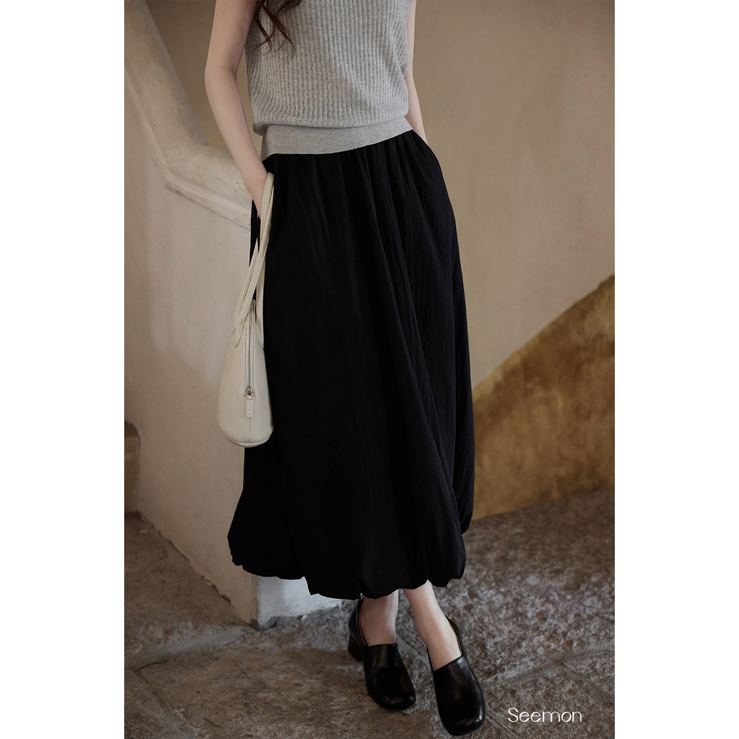 夕蒙2026新款春季韩系气质裙子高腰百褶裙巨好看小个子黑色半身裙