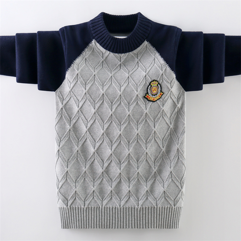 儿童毛衣秋冬款套头纯棉针织打底衫中大童洋气男童加绒加厚线衣潮