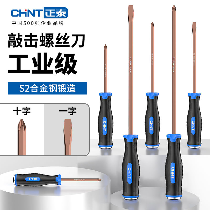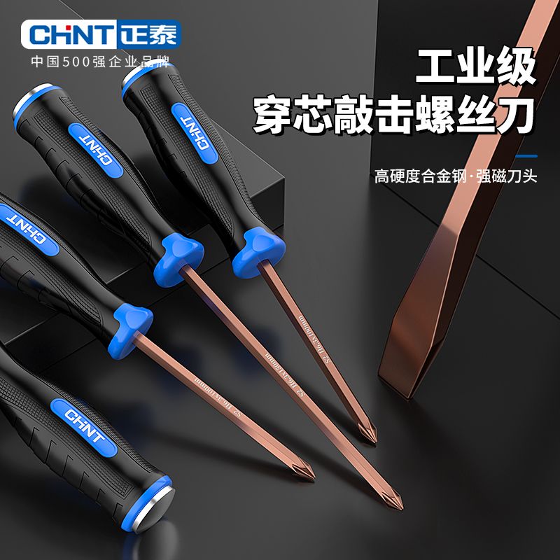 正泰一体一字穿心螺丝刀可敲击加粗十字改锥套装加长平口梅花起子