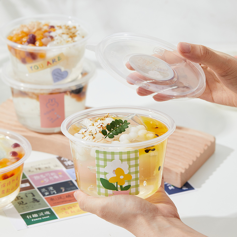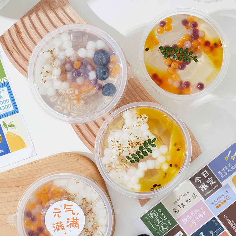 网红冰粉打包盒水果捞一次性带盖圆形盒子杨梅冰汤白凉粉专用圆碗