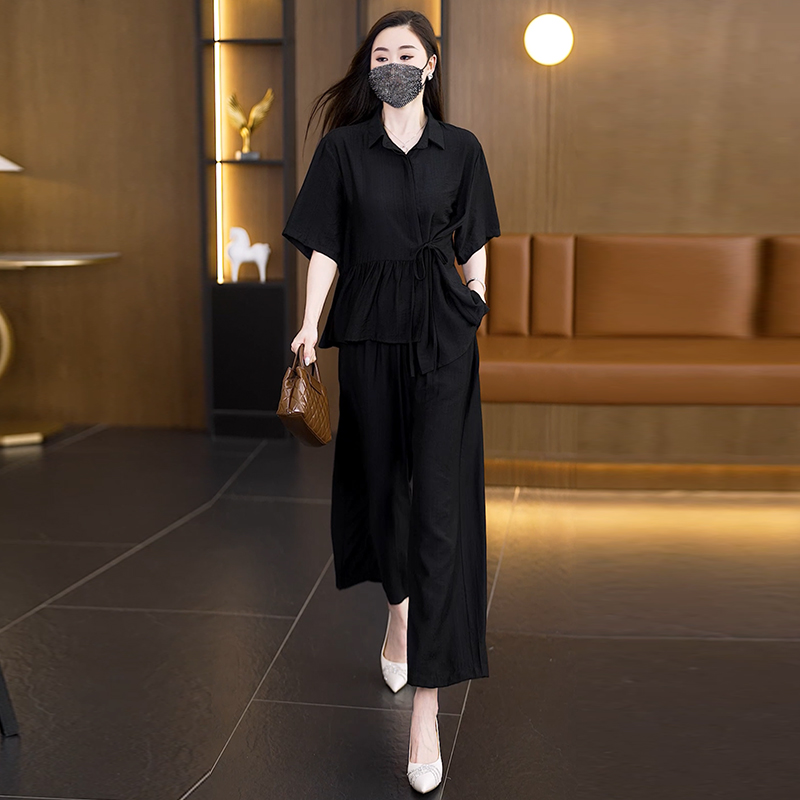 高级感纯色两件套女夏季新款妈妈时尚减龄显瘦休闲宽松阔腿裤套装