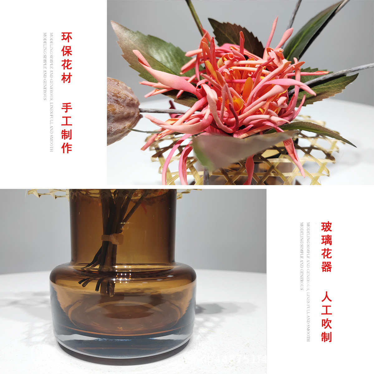 现代设计插花酒店客厅软装仿真花艺样板房洽谈桌前台装饰假花摆件