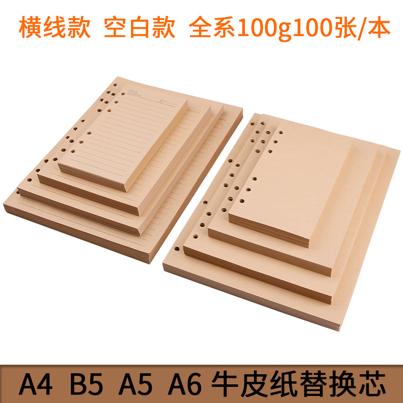 力路六孔活页纸厚笔记本替换纸芯4孔6孔9孔替芯a6a5b5a4网方格活页本内芯空白米黄道林纸牛皮纸记事本活页芯