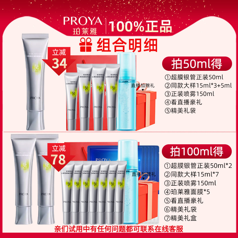 珀莱雅银管防晒霜50倍防紫外线隔离遮瑕三合一军训正品官方旗舰店