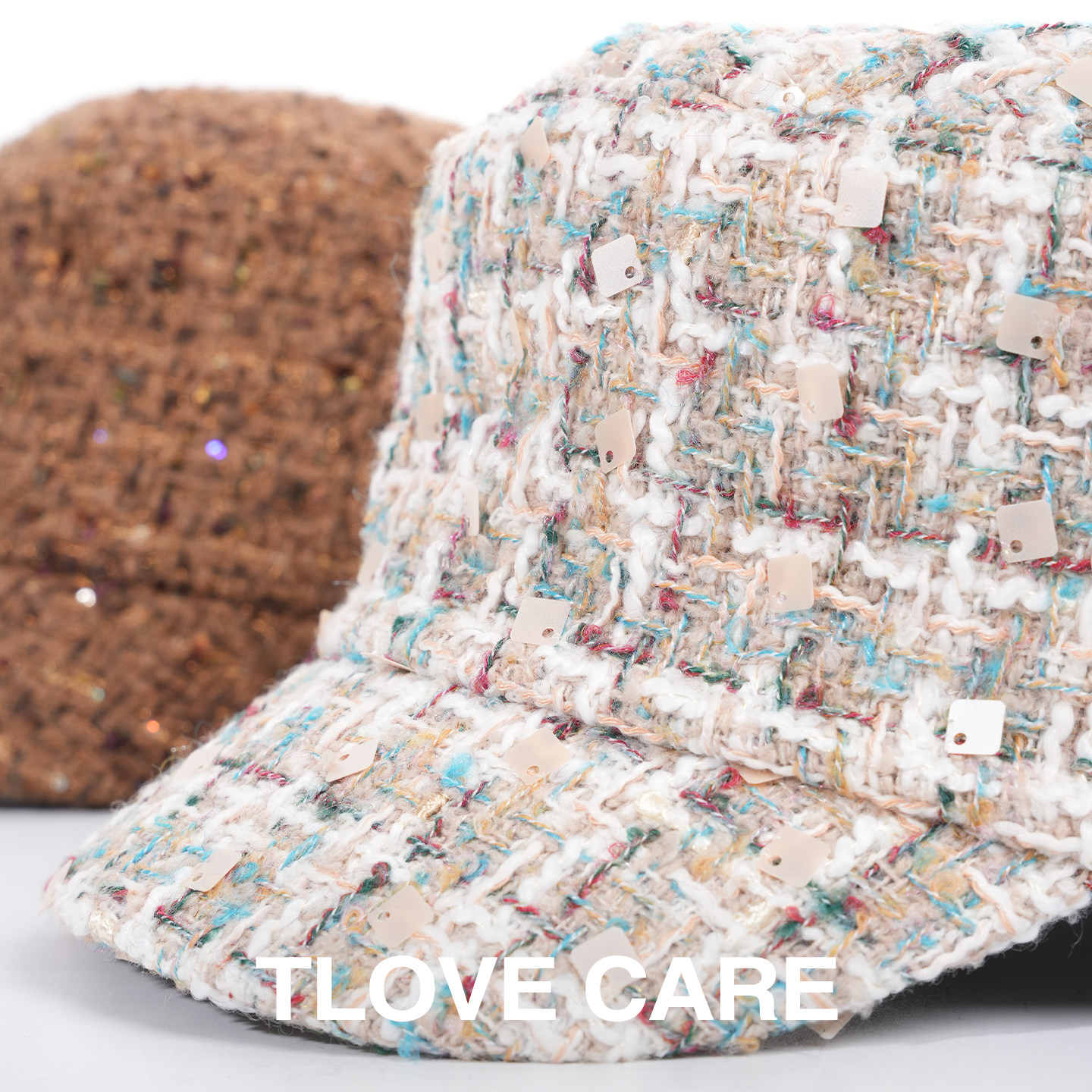 9938+小香风粗花呢八角鸭舌帽女秋冬英伦复古网红帽子