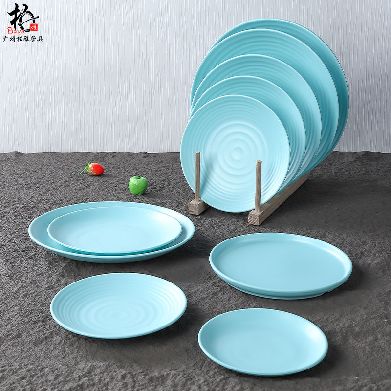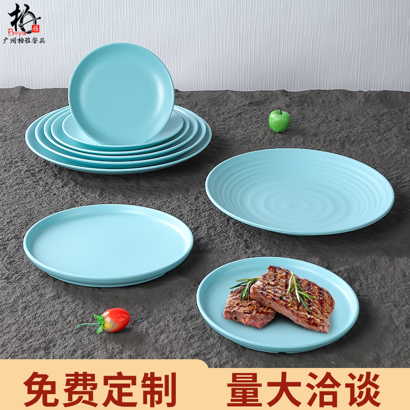密胺盘子平盘圆形饭店炒菜专用商用餐具塑料圆盘酒店自助餐盘菜盘