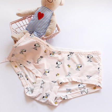 甜美系日系少女史努比牛奶丝冰丝无痕低腰棉裆女士夏透气三角内裤