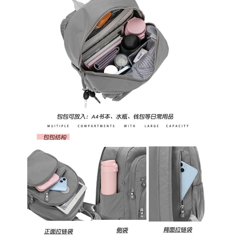 男女双肩包时尚2023新款尼龙布防泼水轻便多口袋旅行背包学生书包