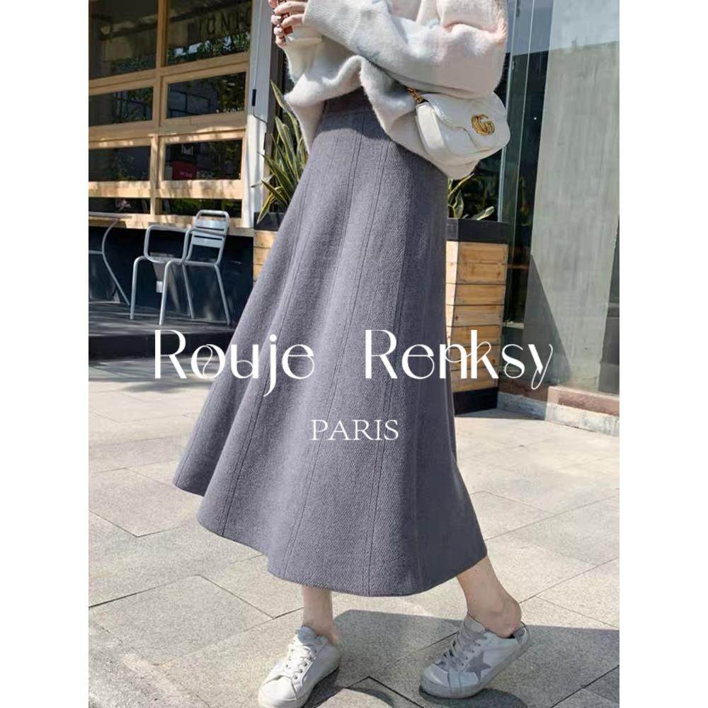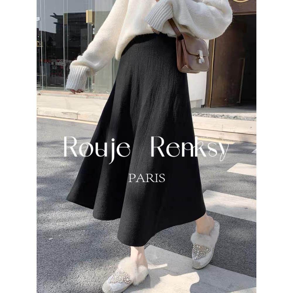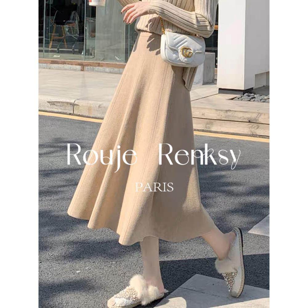 法国Rouje Renksy法式秋冬季白色针织毛呢半身裙女高腰小个子伞裙