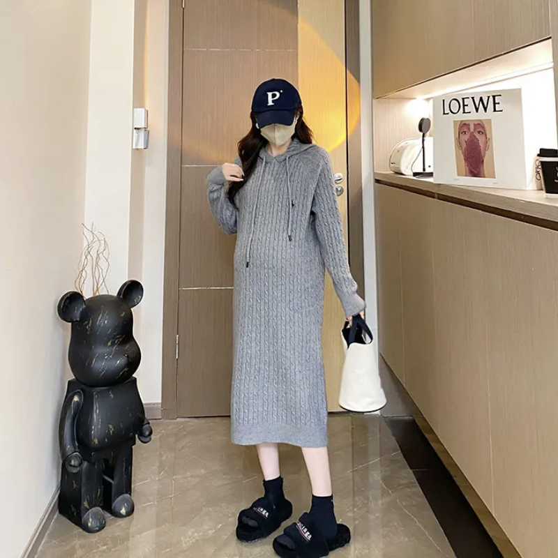 孕妇装秋冬马甲棉服秋季2023时尚洋装K连帽毛衣裙宽松中长裙显瘦
