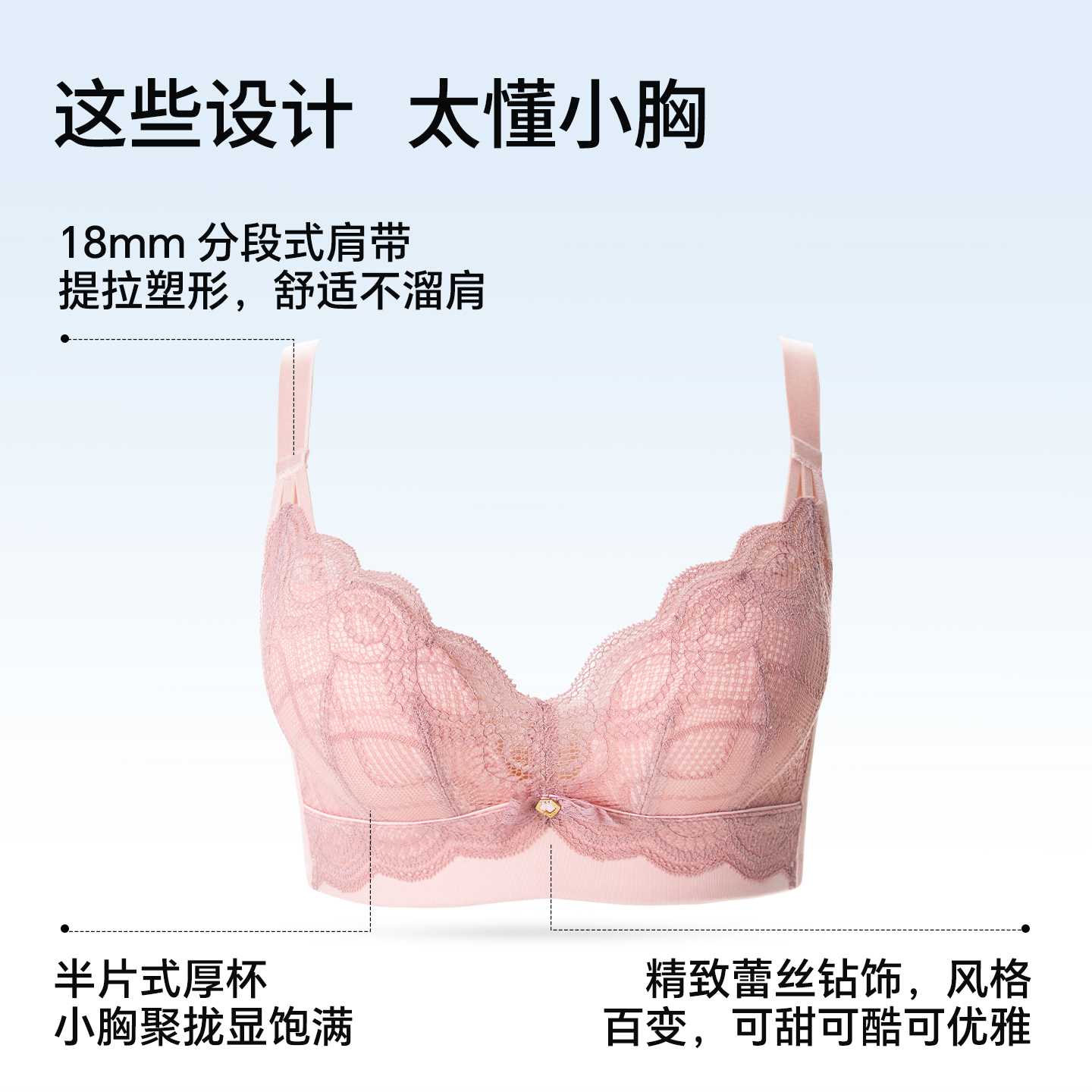 西维娅时尚撞色蕾丝内衣小胸聚拢显大半片式亲肤舒适含蚕丝文胸罩
