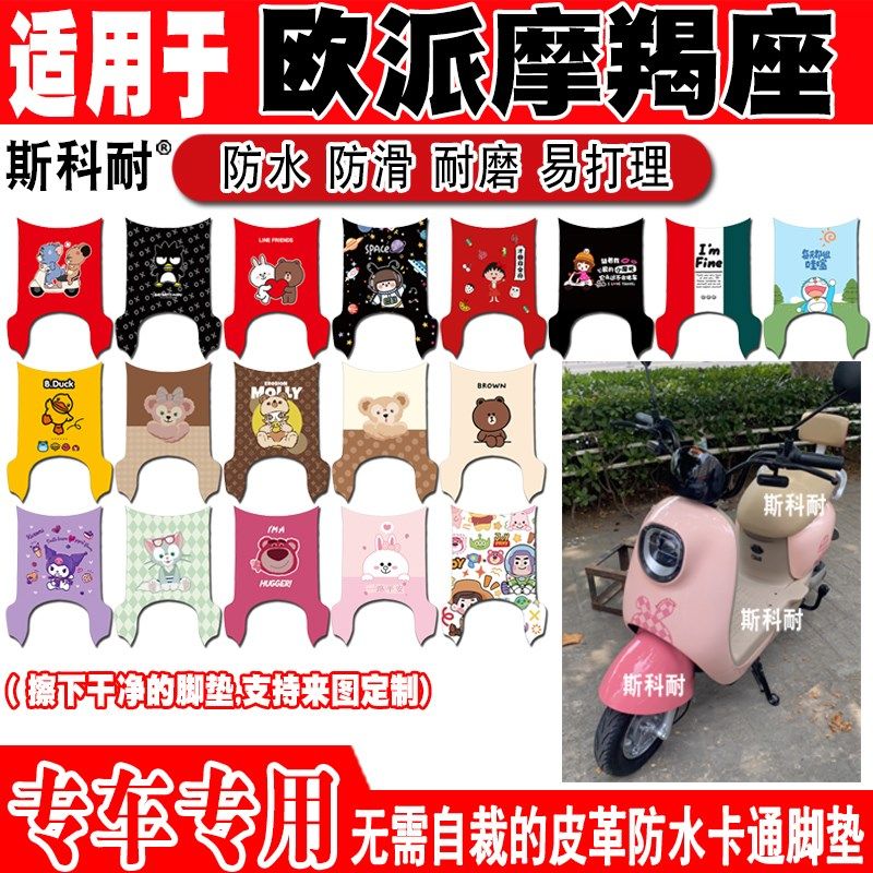 适用于欧派摩羯座电动车脚垫TDT69Z可爱卡通皮革防水防滑脚踏垫