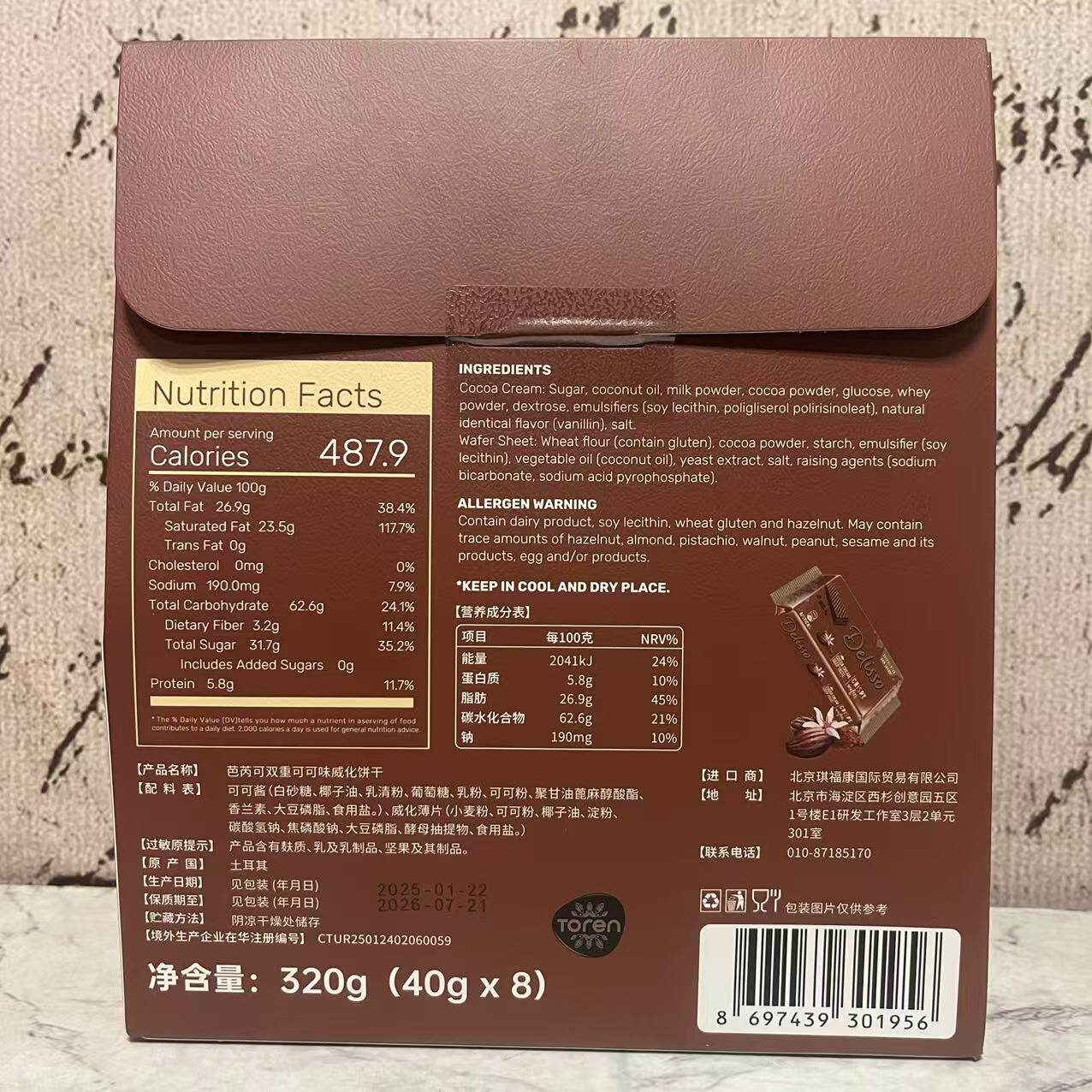临期特卖 土耳其进口双重可可椰子榛子香草味威化饼干320g(40g*8)