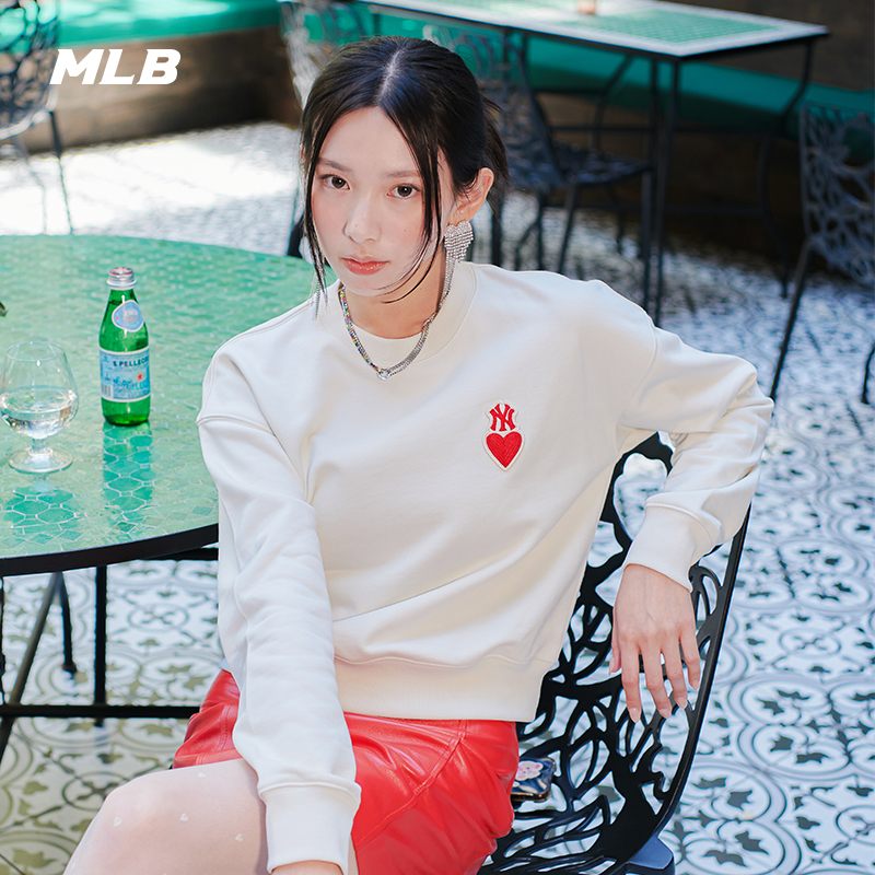 MLB官方男女情侣爱心刺绣logo卫衣宽松时尚休闲运动圆领上衣MTH02