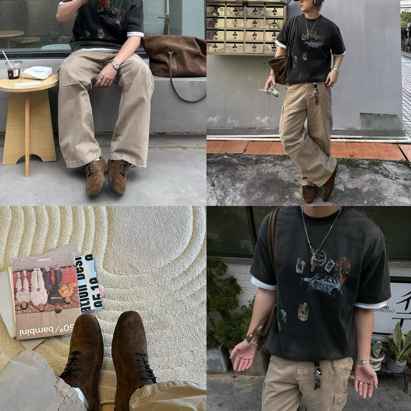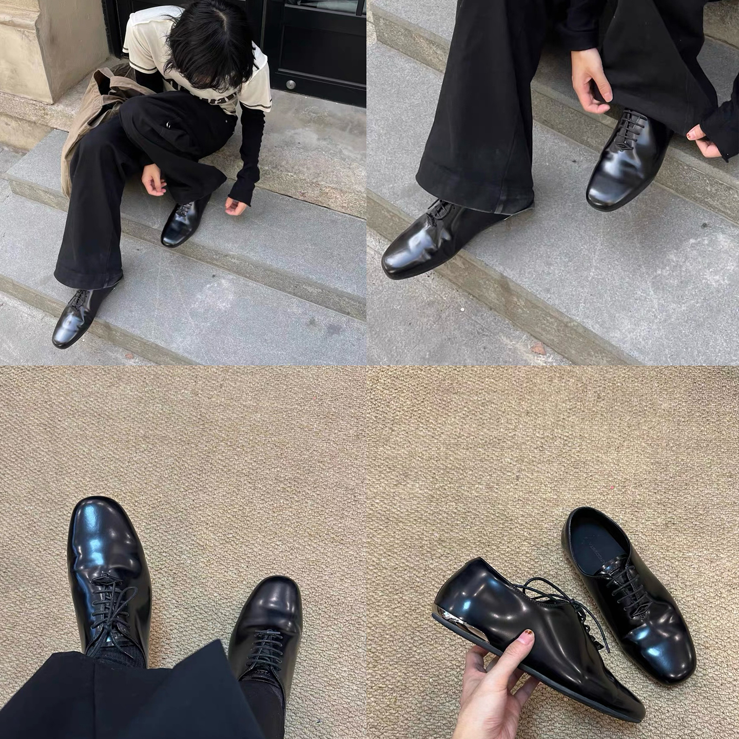 UNZIZHI 头层牛皮圆头乐福鞋薄底金属休闲皮鞋通勤百搭德比鞋男生