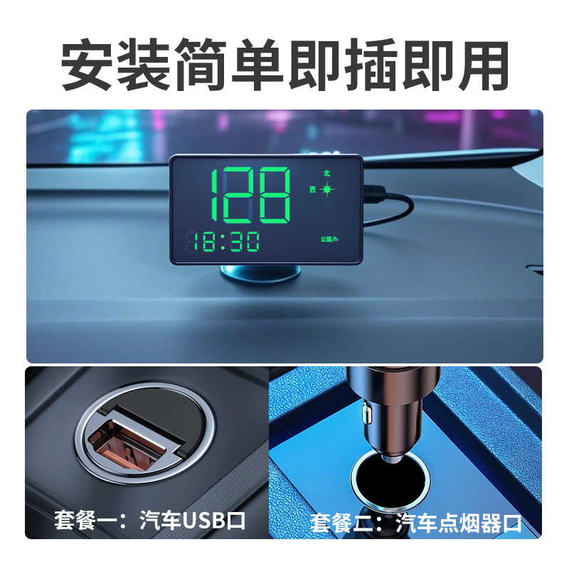 汽车通用时速车载hud抬头显示器无线测速仪表GPS电子狗车速显示器