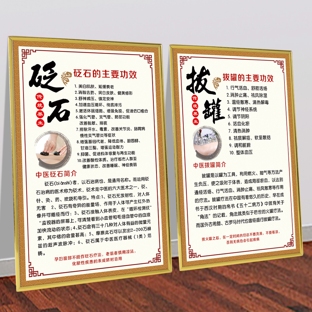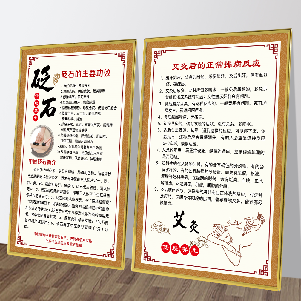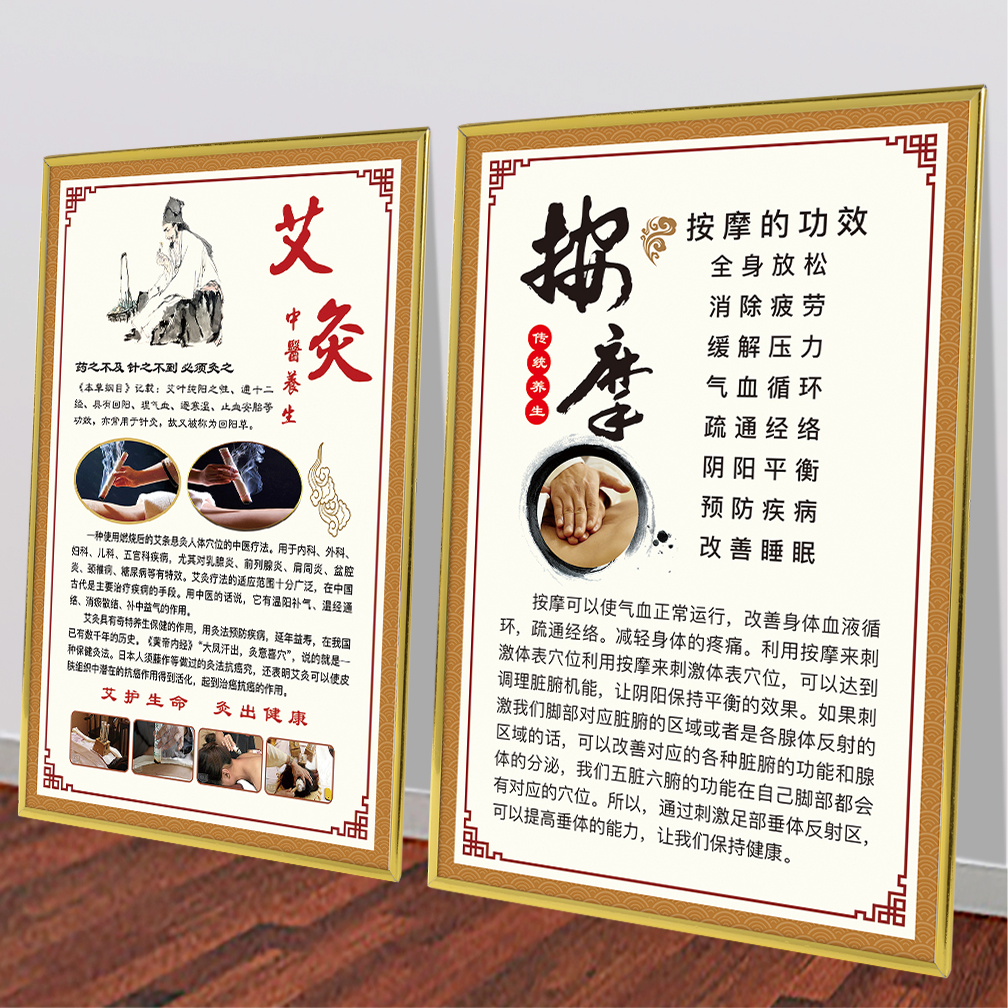 艾灸拔罐针灸推拿墙贴纸海报装饰画中医养生理疗头疗刮痧砭石挂图