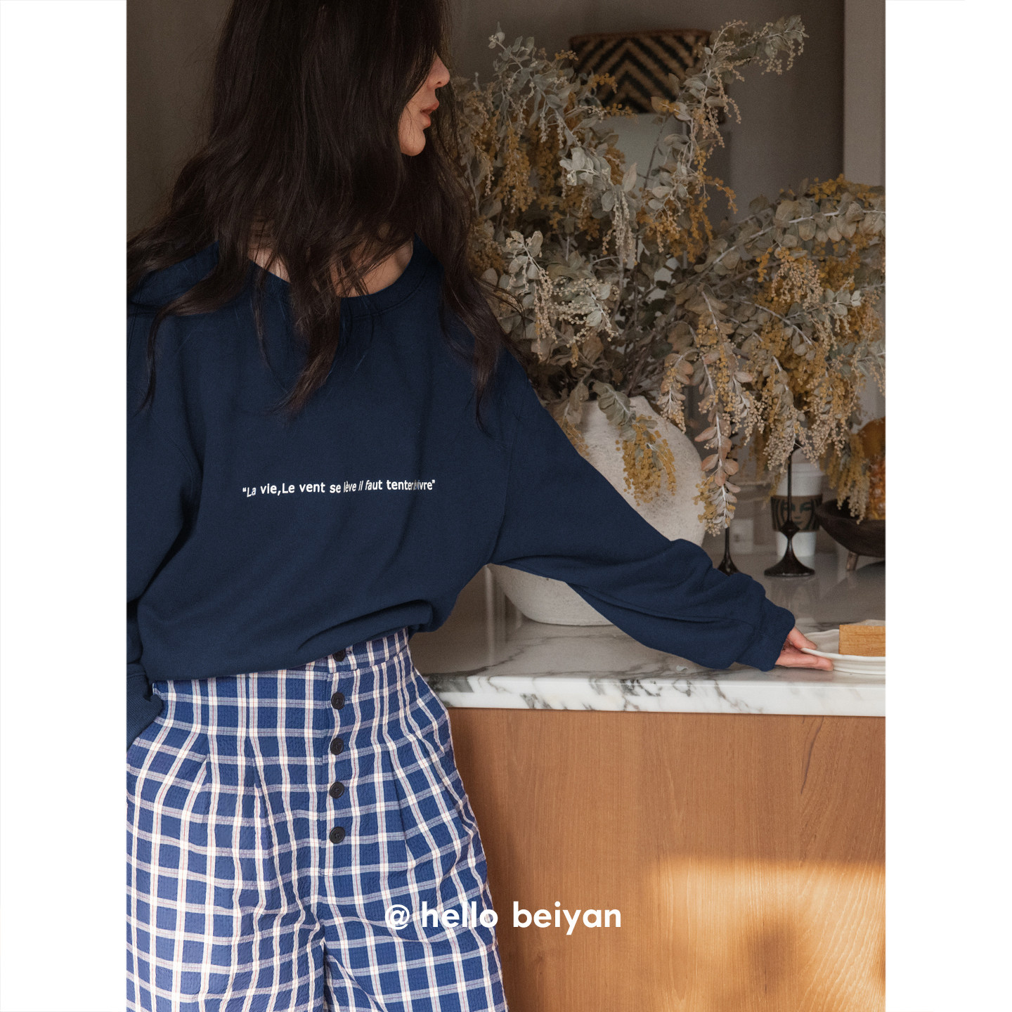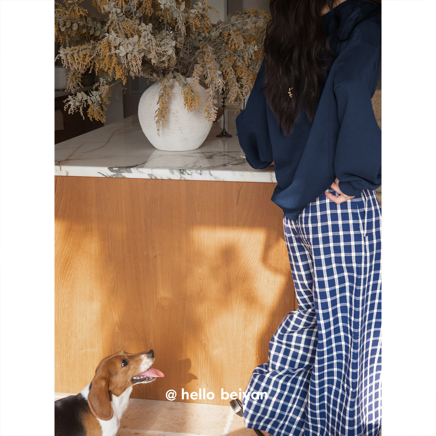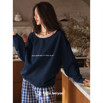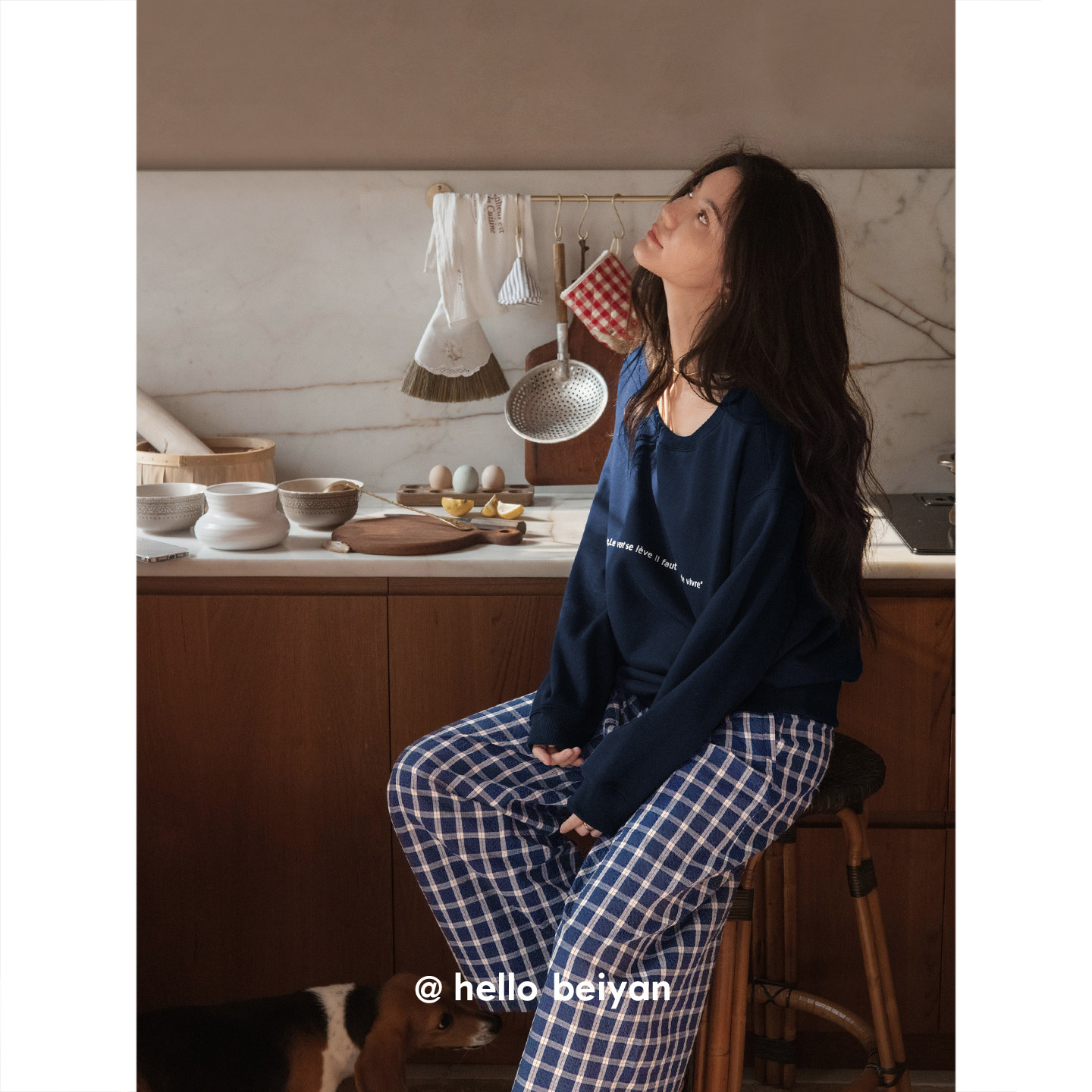 贝妍睡衣女秋莫代尔棉长袖格子裤家居服慵懒风韩系早秋穿搭一整套