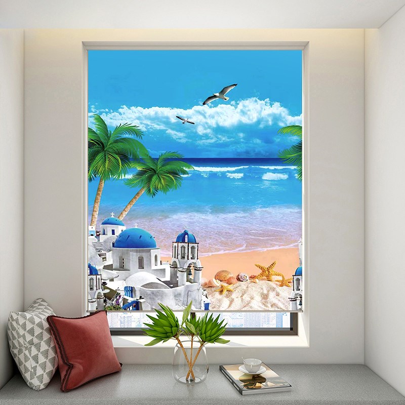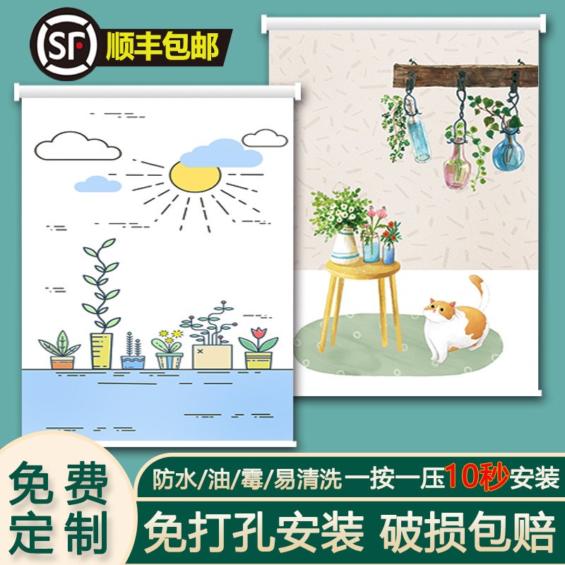 厨房卫生间免打孔防油窗帘v浴室遮光遮阳厕所遮挡帘百叶卷帘拉卷