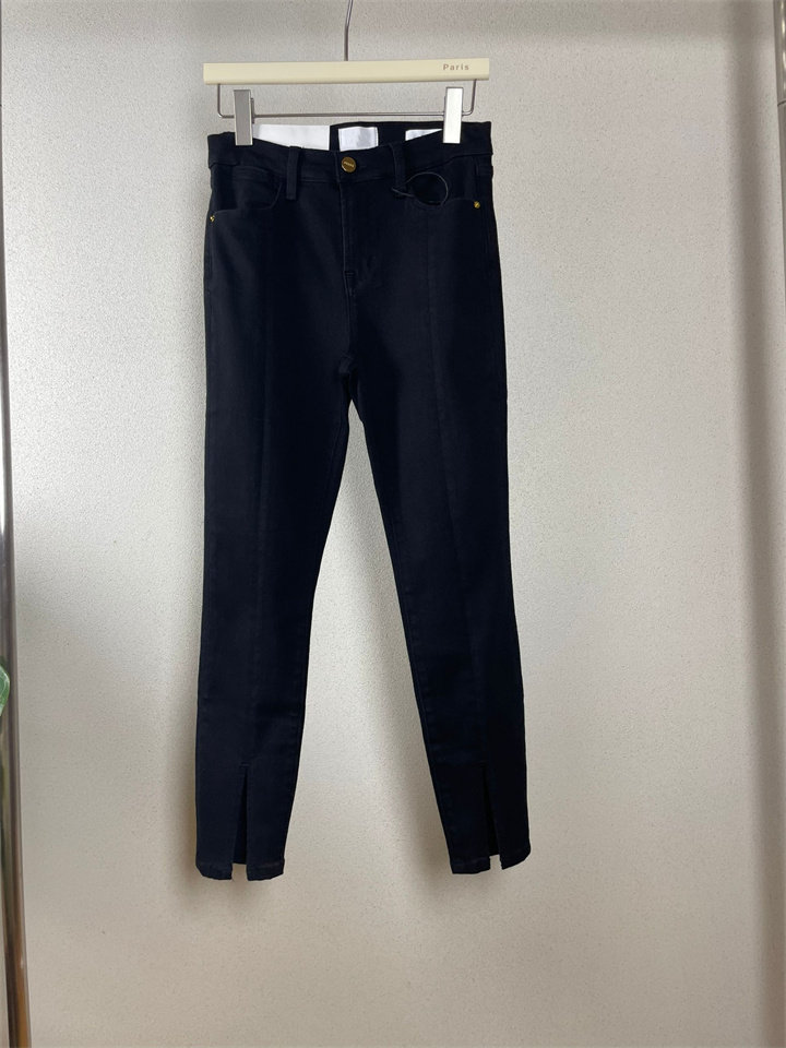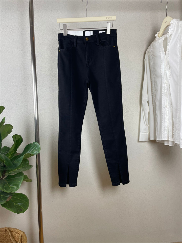 FD经典巨显瘦黑色高腰高弹性修身牛仔裤裤脚开叉9分小脚小黑裤