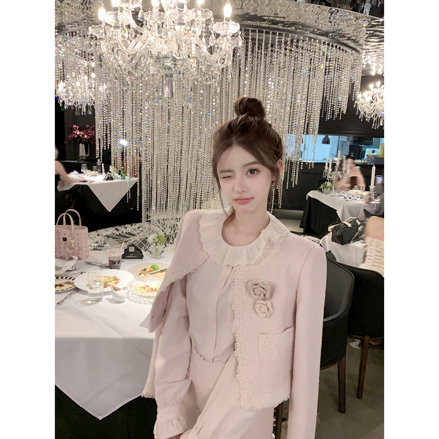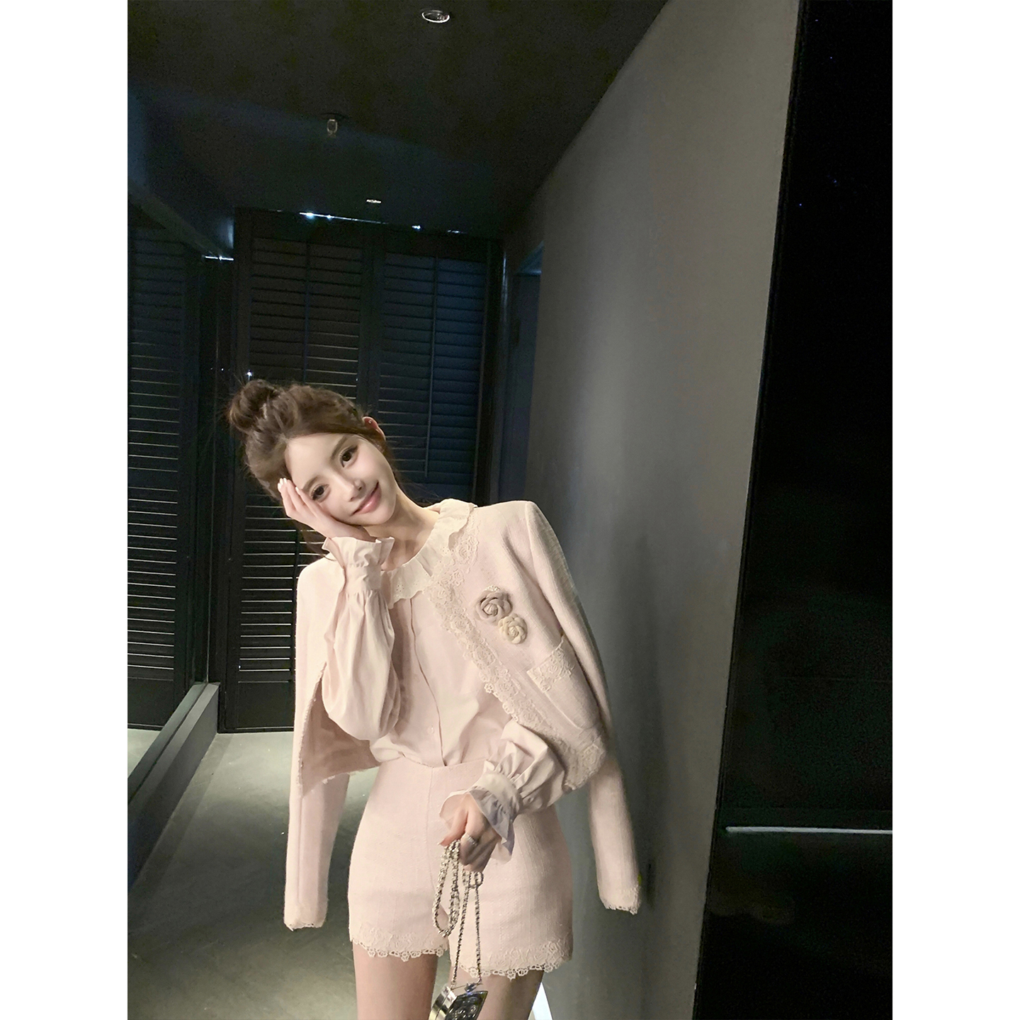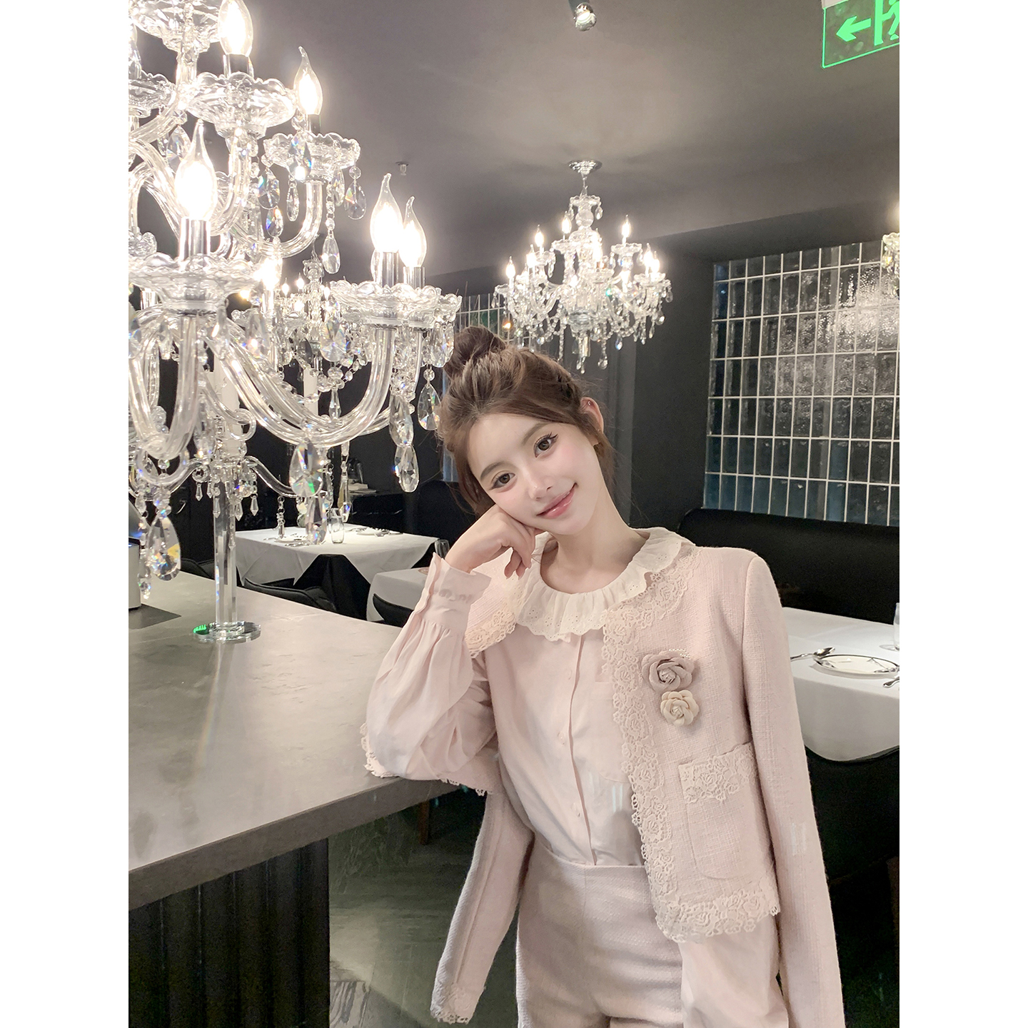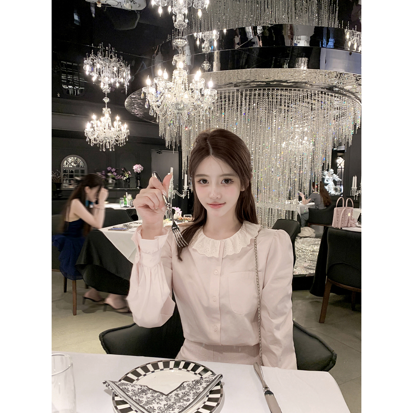 若语定制 甜心赴约 100棉刺绣花边娃娃领衬衫气质少女风早秋新款