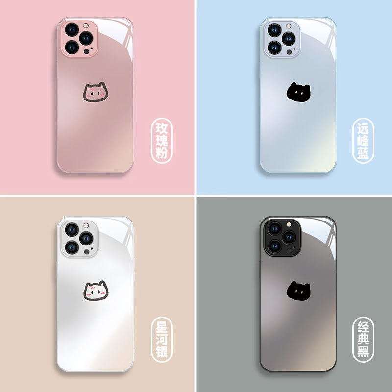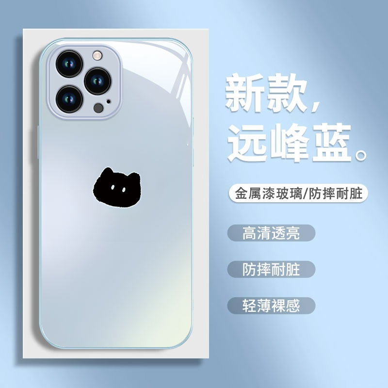 适用苹果15promax手机壳14pro新款时尚13mini玻璃12镜头11全包8简约猫咪7plus可爱6splus女xr防摔xs保护se3