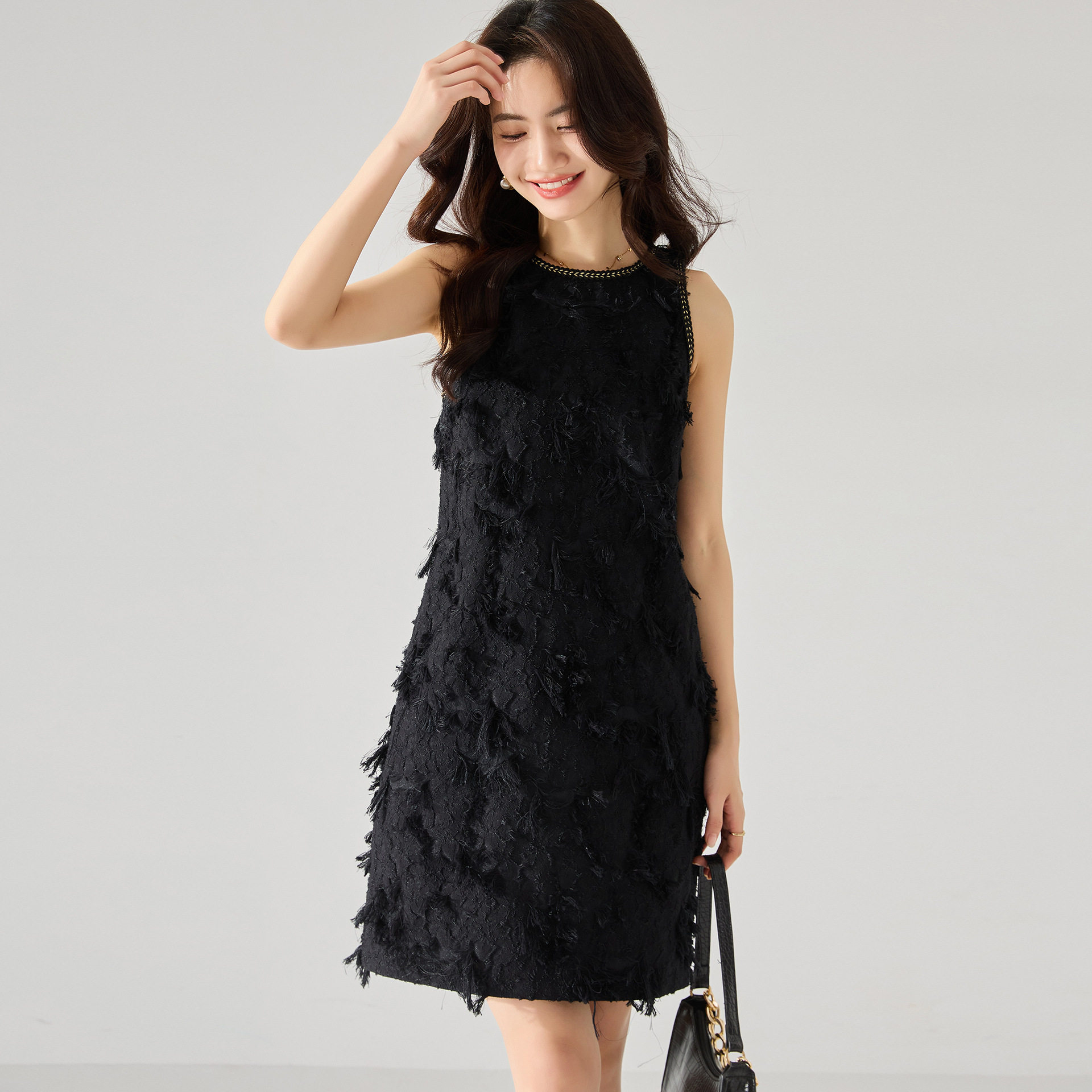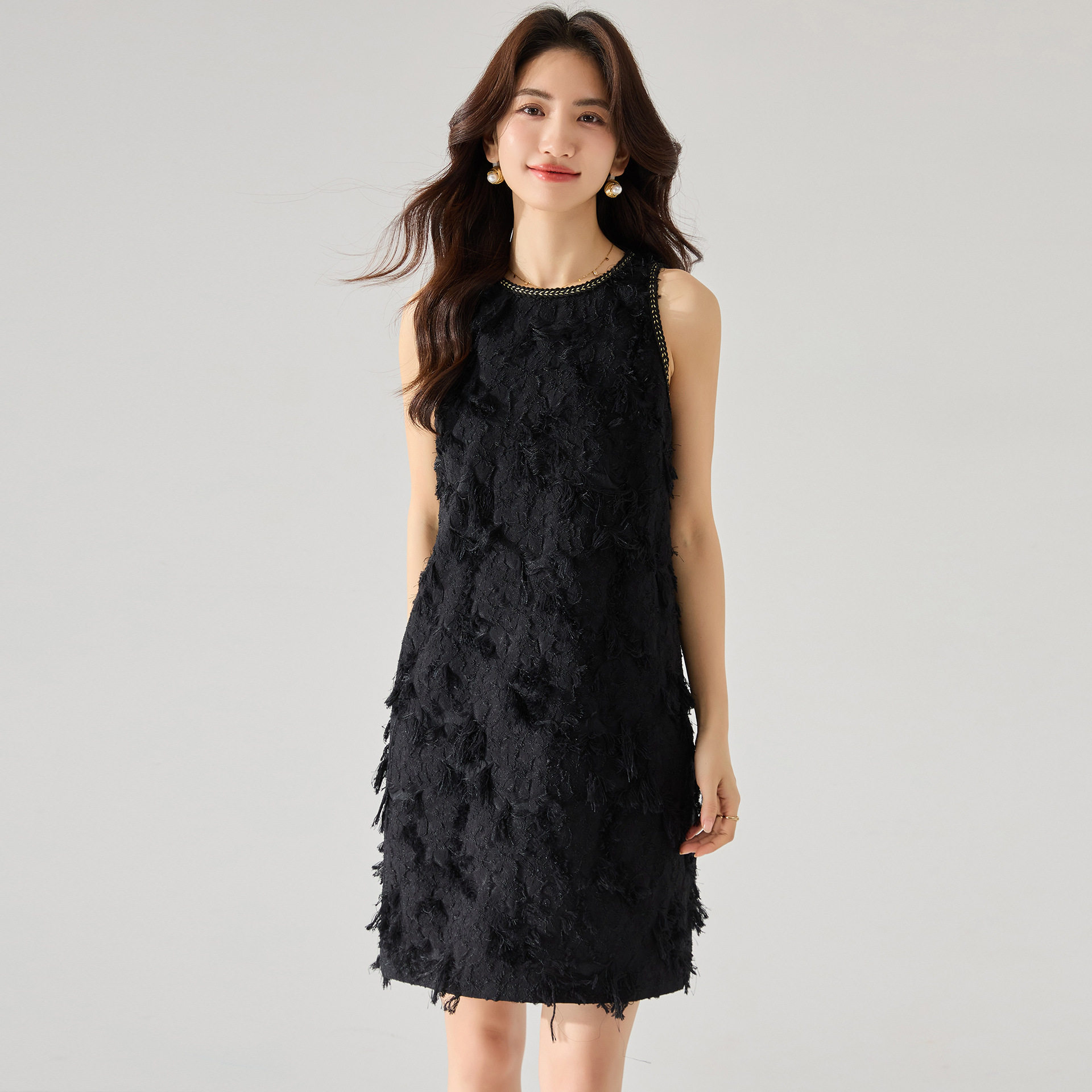 繁复剪花流苏小香风连衣裙轻奢精致名媛千金重要场合高端礼服裙