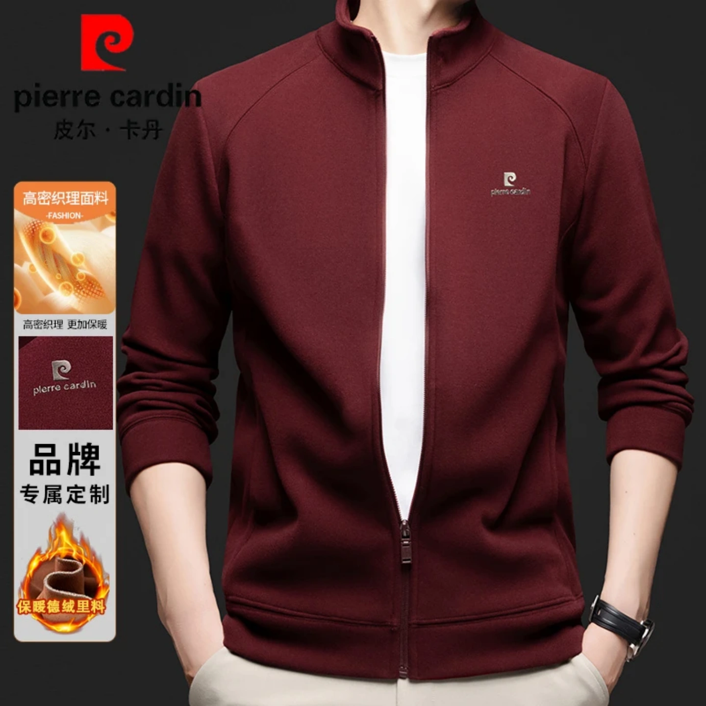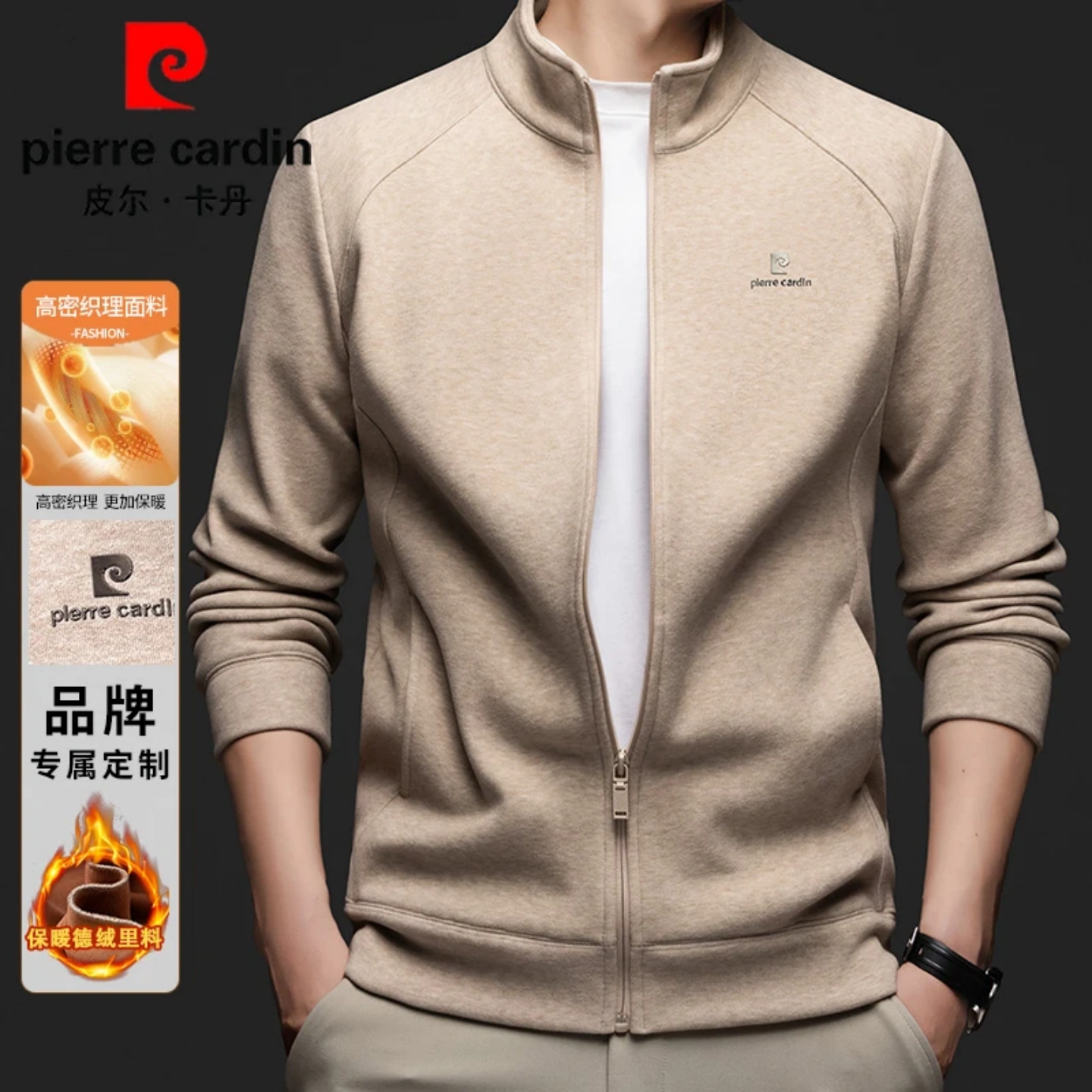皮尔卡丹男士时尚保暖立领高密休闲外套2025秋冬新款德绒开衫卫衣