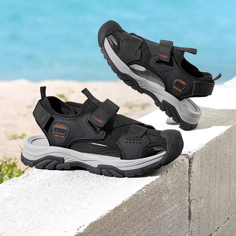 骆驼男鞋2025夏季软底包头沙滩鞋户外防撞舒适休闲运动凉鞋