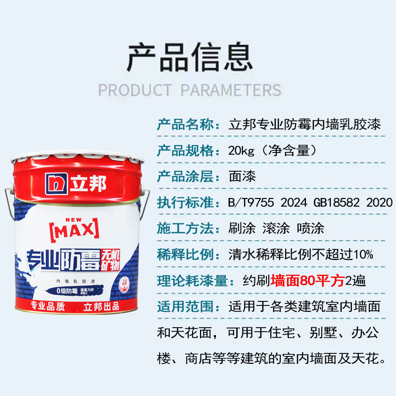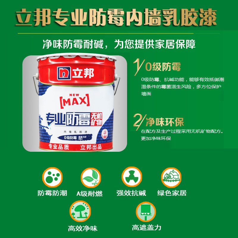 立邦专业防霉内墙乳胶漆白色墙面漆室内防潮翻新自刷家用环保涂料