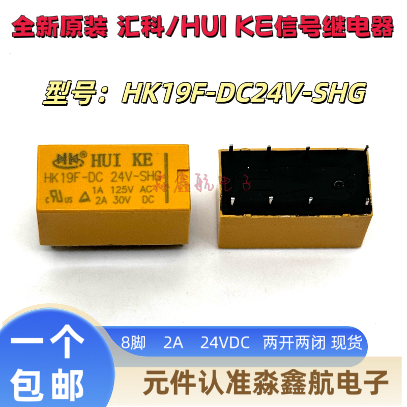 全新原装 HK19F-DC24V-SHG汇港功率继电器 2A 24VDC 8脚 两开两闭