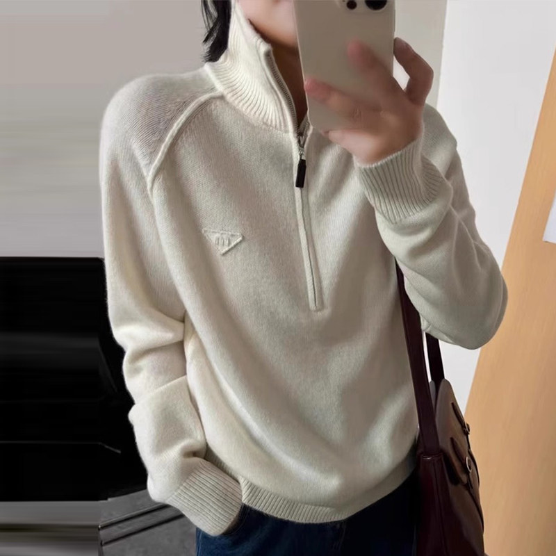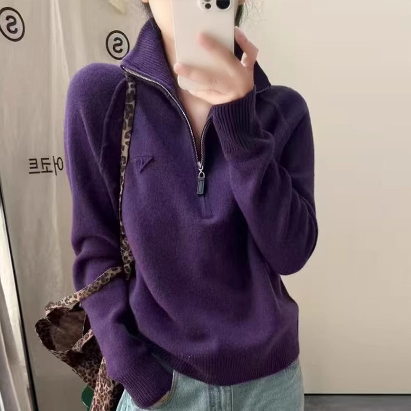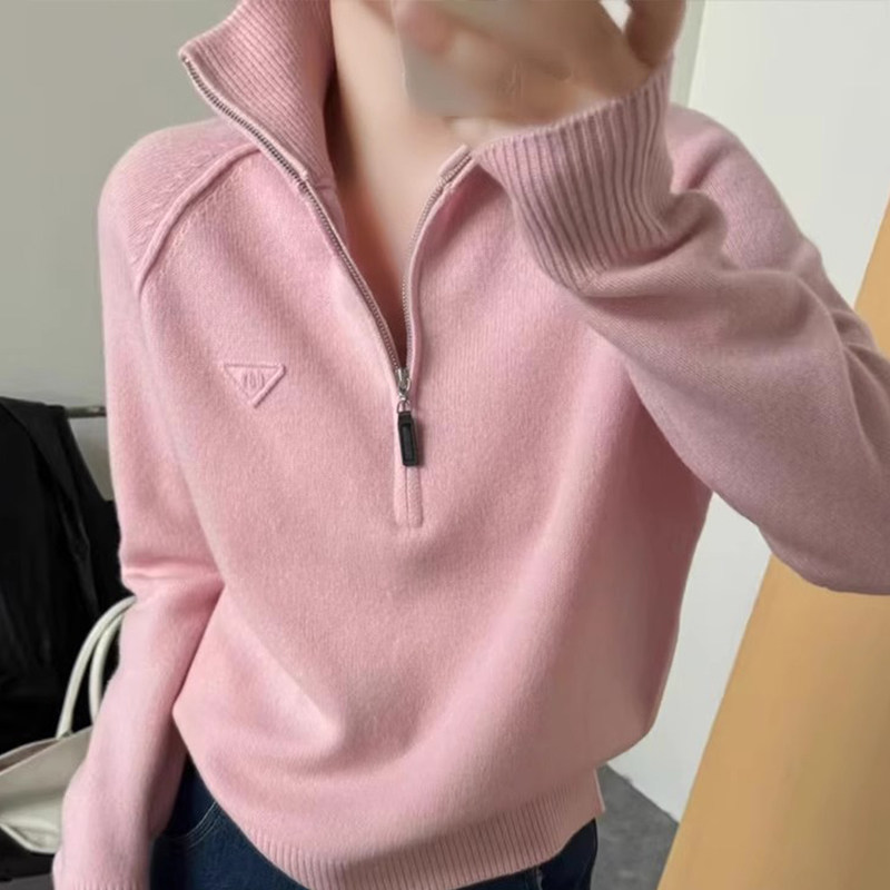 100%羊毛欧货2026红色本命年半拉链三角标宽松针织衫长袖毛衣女