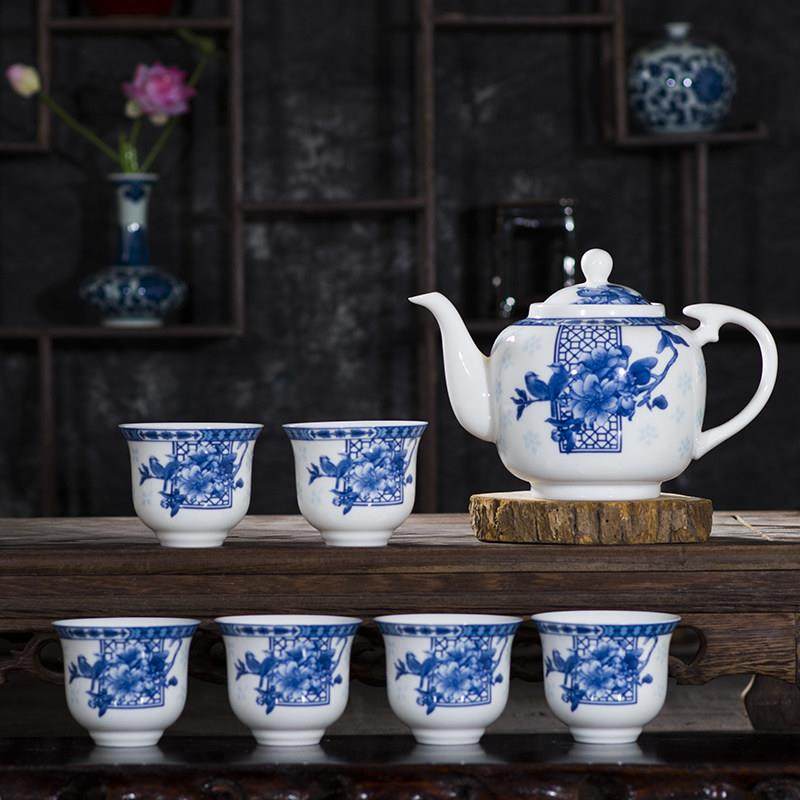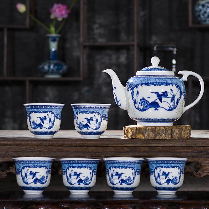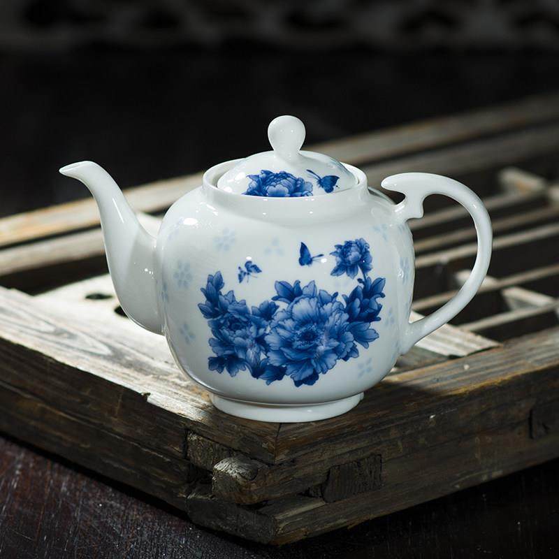 茶具套装家用茶壶陶瓷单壶带不锈钢滤网青花瓷中号釉下彩景德镇制