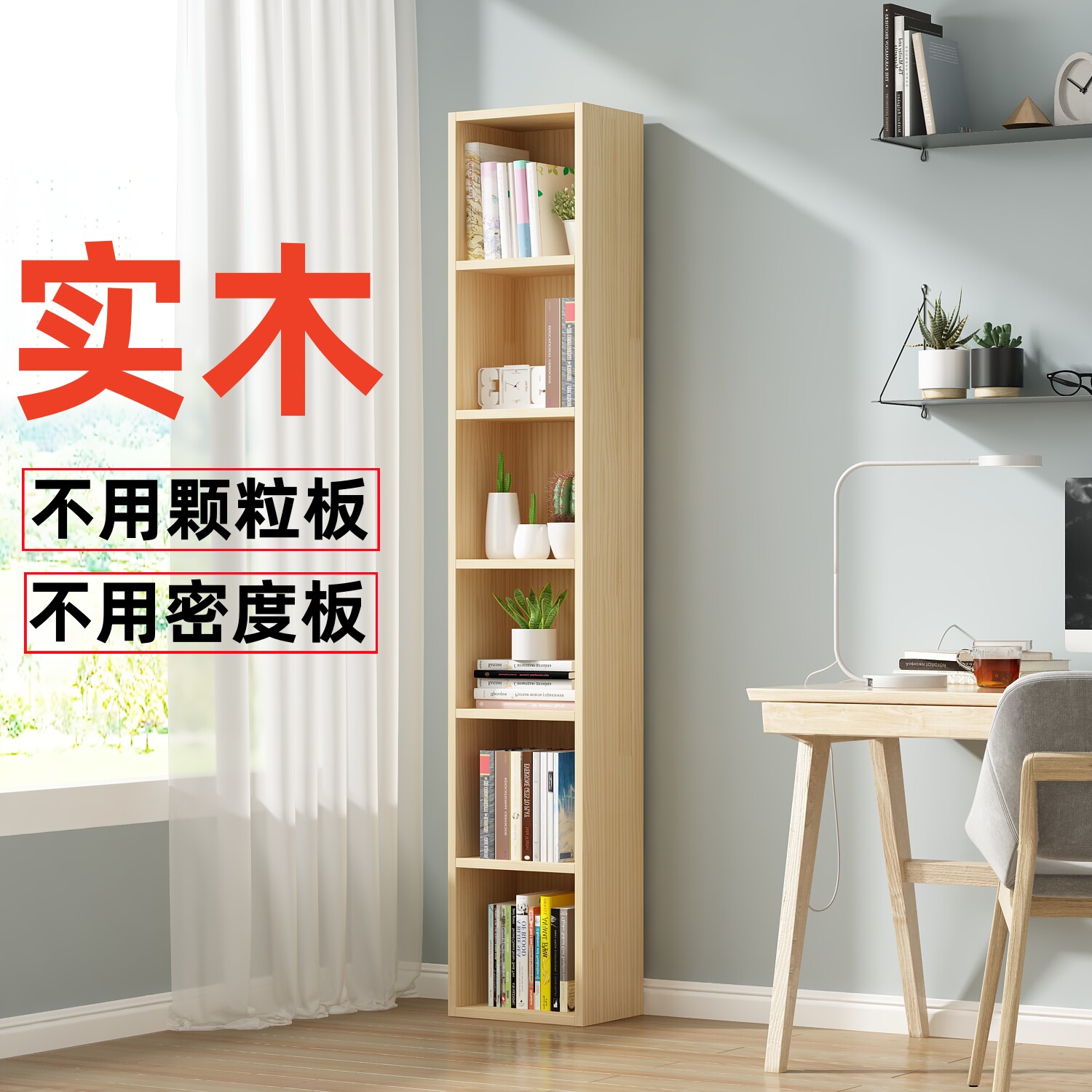 简易窄书柜落地边角儿童书架飘窗置物架实木格子架夹缝储物收纳柜