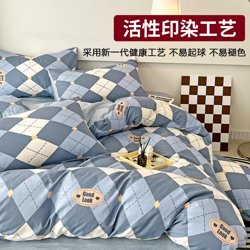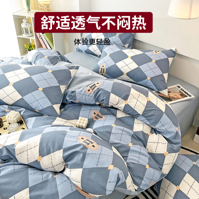 无印良品床上四件套纯棉全棉儿童男生被套学生宿舍床单三件套床品