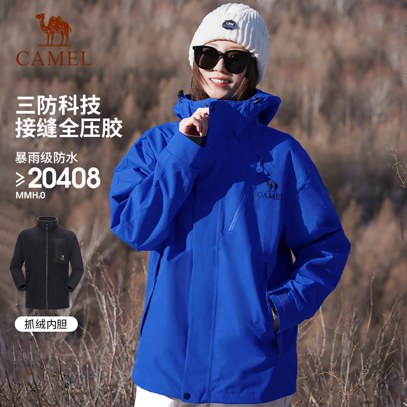 骆驼王者凯甲25年户外冲锋衣男三合一防风抓绒内胆保暖旅行外套女