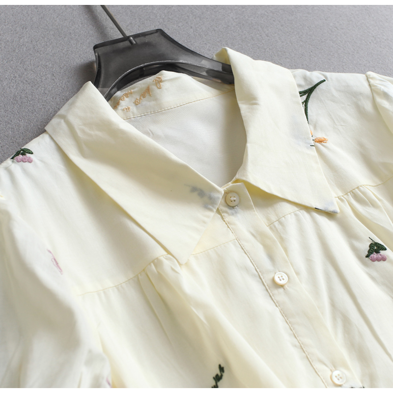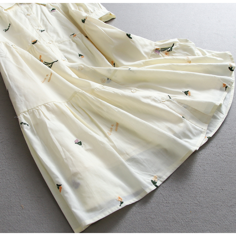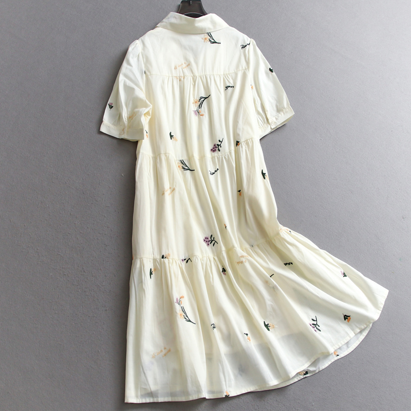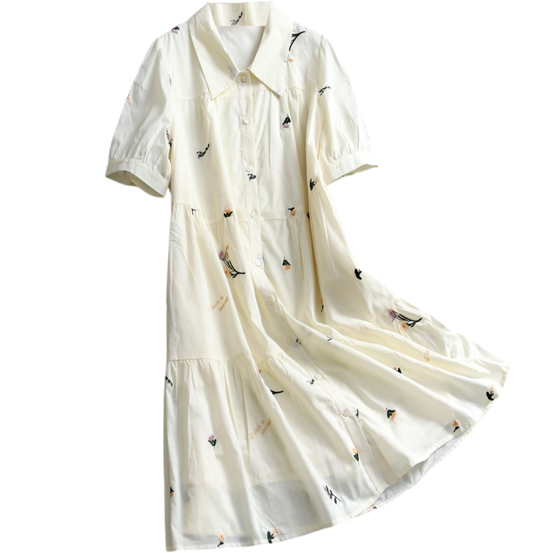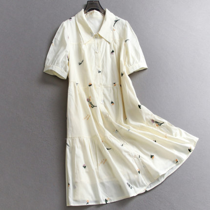 植物碎花刺绣衬衫裙宽松女连衣裙