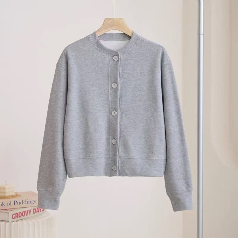 2026新款韩式休闲风黑色开衫短外套女长袖圆领百搭棒球服春秋外套